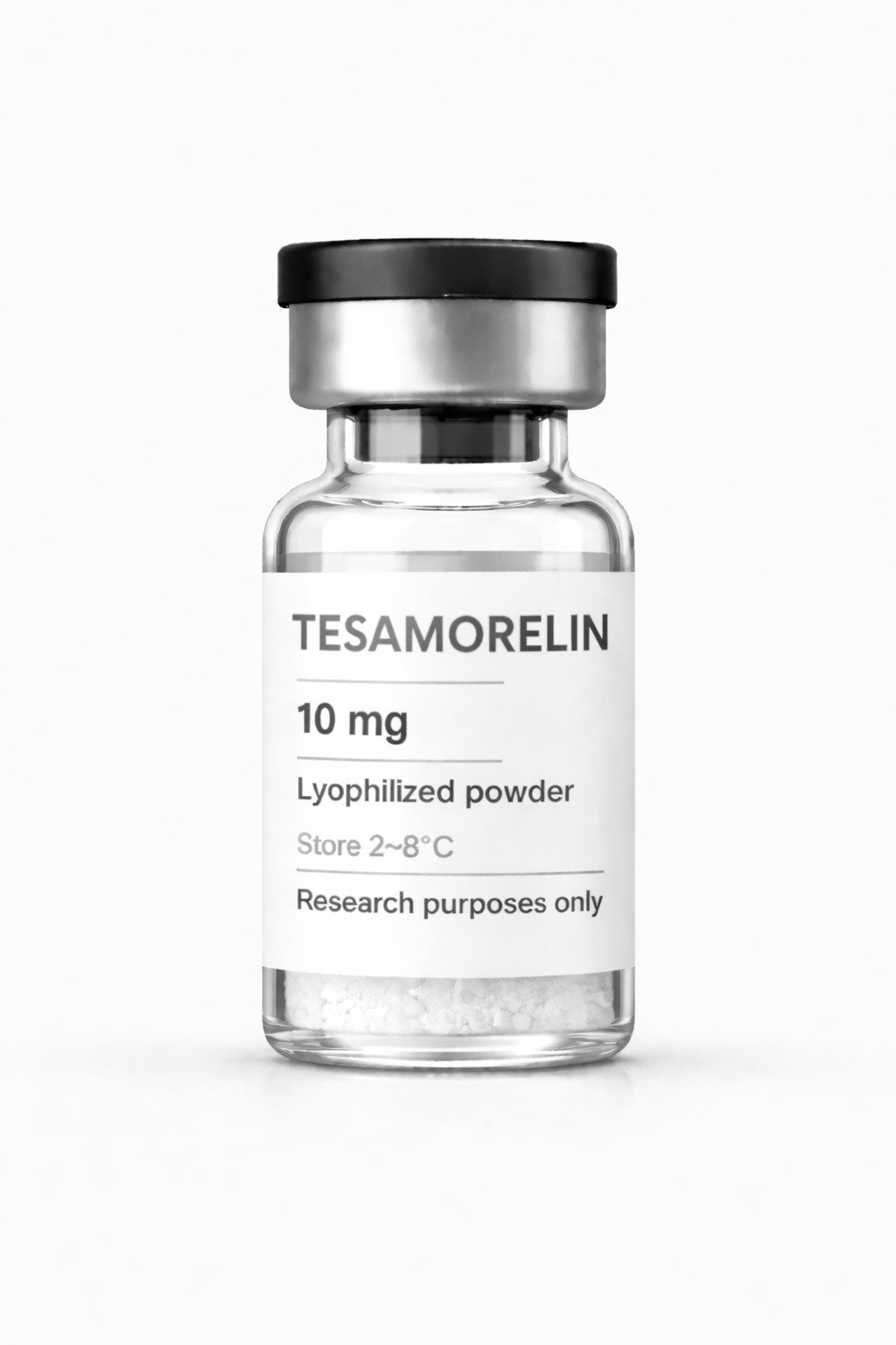 Tesamorelin is a synthetic peptide supplied as lyophilized powder for research investigation.